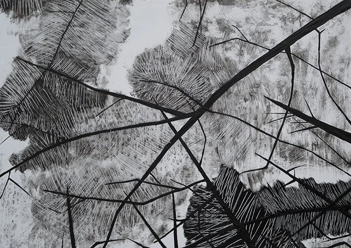 Most of the paintings are on rectangular canvas devoid of frames and borders to become a space where the eye can imagine a new depiction of the object itself. Birch’s trees become moving bodies that can be modulated to create unpredictable and surprising effects, while landscapes, stripped of the superfluous, are depicted with minimal imagery.